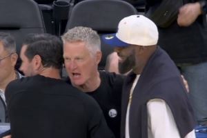 赛后,詹姆斯和雷迪克与科尔拥抱寒暄。