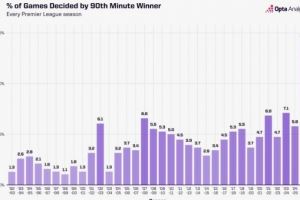 本赛季英超90分钟后打进制胜球比赛占比14.3%,远超此前所有赛季